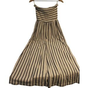 Striped Strapless Jumpsuit Wide Leg Smocked Bodice Casual Beach Summer Romper