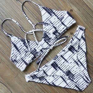 Striped Strappy Bikini Set