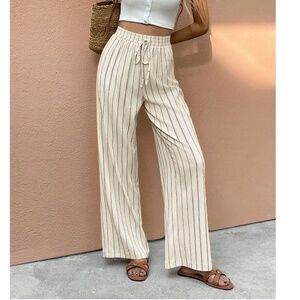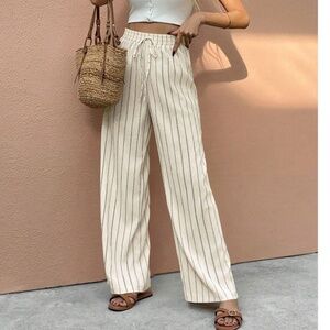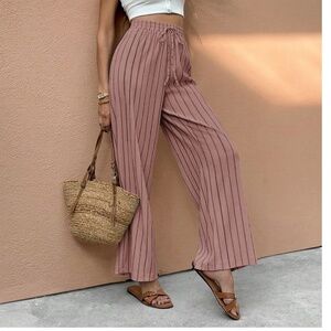 Striped Stretchy High Waisted Wide leg Trouser Pants