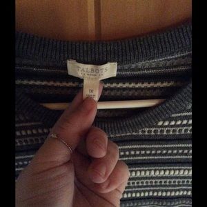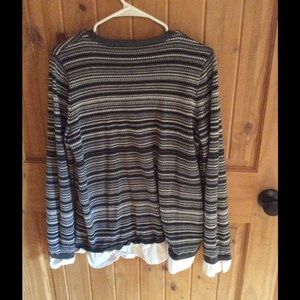 Black / white striped long sleeve sweater with cotton trim on bottom edges. LIKE NEW.