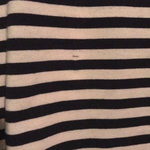 Striped sweater white and deep navy blue,or black hard to tell.GUC See last picture for small mark.Tag behind neck was removed when I purchased,price reflects those.