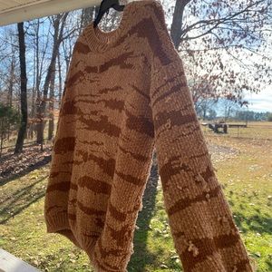 Loose fitting, a little oversized, picked all over but looks in style that way