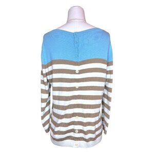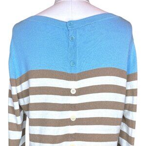 Striped Sweater Women's Size Large Button Back Knit Pullover Nautical Lightweight Coastal Chic