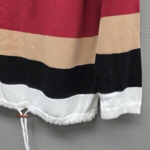 Striped Sweater Womens XL Black Red Tan White Colorblock Pullover Drawstring Hem