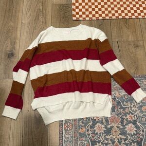 Striped Sweater in Cream, Brown, and Red Women’s Large