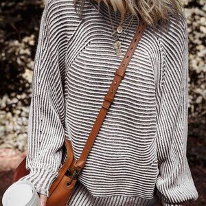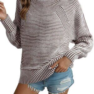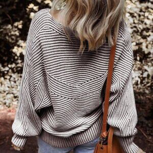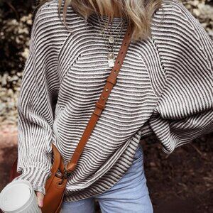 Striped Sweaters for Women Boat Neck Batwing Sleeve Oversized Pullover Sweater T