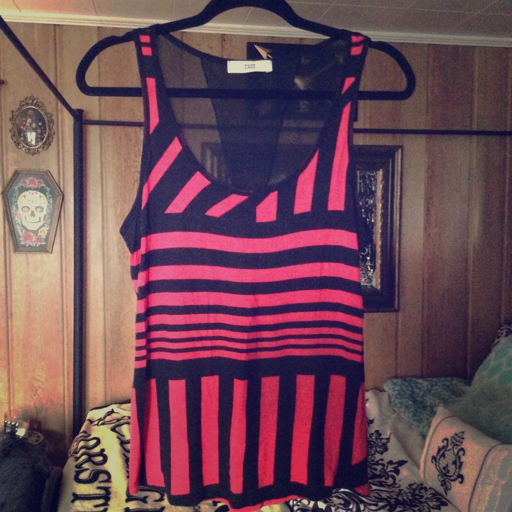 Striped patterned tank with a sheer back