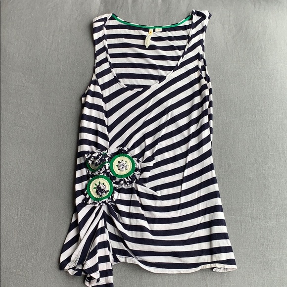 Navy and white striped tank with gathered embellishment on one side. From Anthropologie.