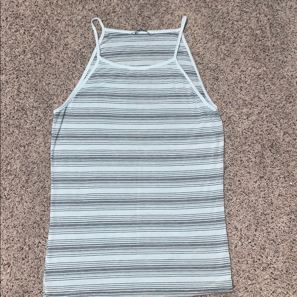 Super soft, comfortable top Very pale blue w/ grey stripes Size M No snags, rips, or stains Good condition