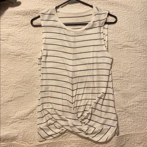 White/black striped sleeveless shirt. Twist detail on front. Super soft material. Used once, excellent condition. Purchased at Target.