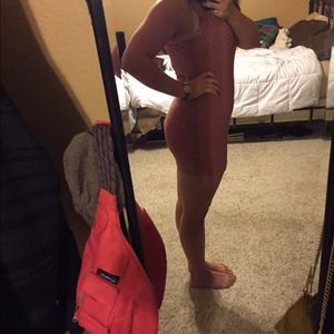 Orange tank dress with thin true blue stripes, the fabric is stretchy, chingy to the body, stripes are about two fingers wide, worn ONCE, bought at Urban Outfitters brand is Sparkle and Fade