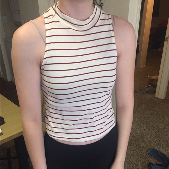 White tank top with red stripes! It's a crop top!