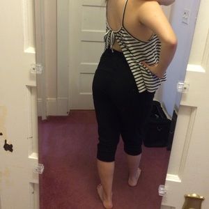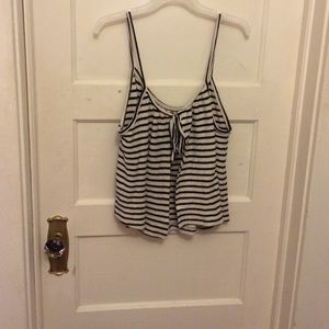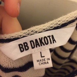 BB Dakota Terry Stripe Knit Flyaway back Tank Top. Flowy fit with Knit shell. This shirt can even make sweatpants look good. Can also be matched with jeans or leggings. Bought this from a Boutique called ShiShi in NYC Manhattan. Black and white stripes. Soft sweater-like material. NWOT; never actually worn. Fits large and extra large. Measures approximately 20" from shoulder.