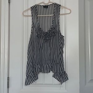 Sheer Striped Black and White w/ 3 Flowers on the Front