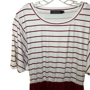 Striped Tie Back Midi Dress White & Burgundy Casual Chic XL