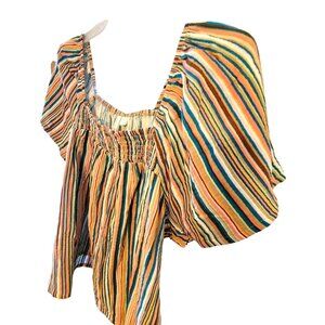 Pretty multi-color striped pattern in teal, pink, orange, peach, brown, and green