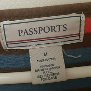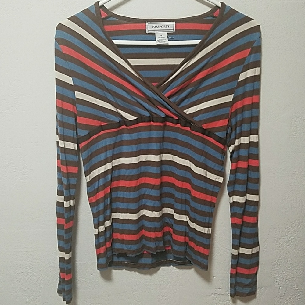 blue, brown and orange stripes v-neck top