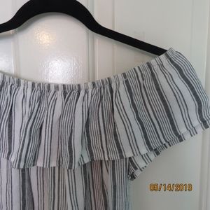 Grey and white striped, off the shoulder, cotton, flowy top