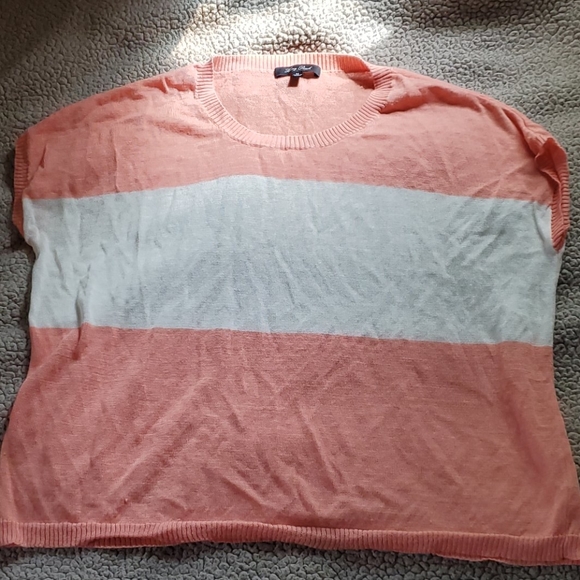 Striped cap sleeved top Used-no stains or obvious wear White and salmon