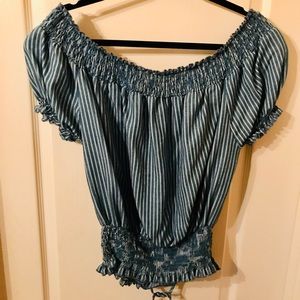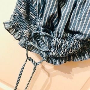 Blue and white striped blouse Off the shoulders Very cute Crop top (adjustable) Size XL
