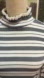 This top is from J Crew, size Large. Navy blue and white stripes. Material is cotton, modal, and elastane. It has a nice soft feel and is stretchy. Ruffle detailing at collar and end of sleeves. Excellent preowned condition from a smoke free home.