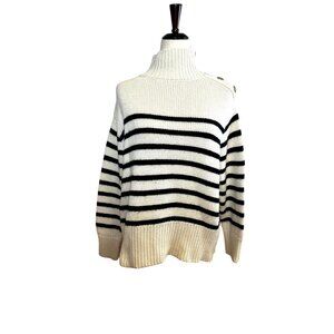 Striped Turtleneck Sweater with Shoulder Button Detail Nautical French Girl S