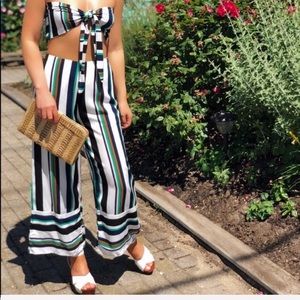 The pants striped silhouette, cropped with elastic in the back for stretch and a wide leg style.