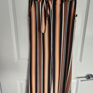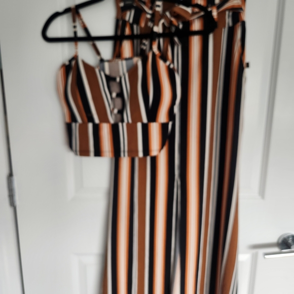 Stylish two-piece set with bold stripes. Features a cropped top and matching pants. Perfect for a chic look.