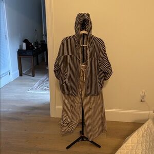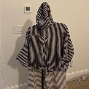 Stylish striped two-piece set with a relaxed fit. Features a top and matching pants. purchased in a small boutique in Sarasota Florida. One size fits all great resort where. It’s actually khaki and navy.