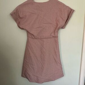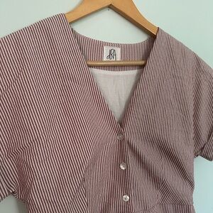 Elevate your wardrobe with this chic striped V-neck dress. Featuring a button-down front, this dress is perfect for any occasion. The classic red and white stripes add a touch of elegance to your style.
