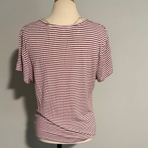 Elevate your style with this chic striped V-neck ruched top. Perfect for any occasion, this top offers a flattering fit and has adjustable tie for cinching. Size XL