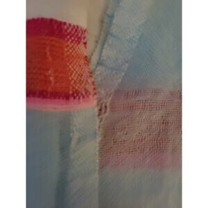 Striped V-Neck Short Sleeve Fringed Swim Cover Up.  Light Blue, pink, brown.