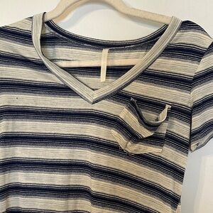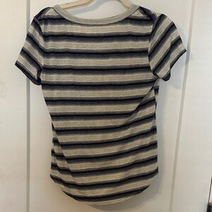 Stylish striped V-neck top for women. Features a classic design with a comfortable fit. Perfect for casual outings.