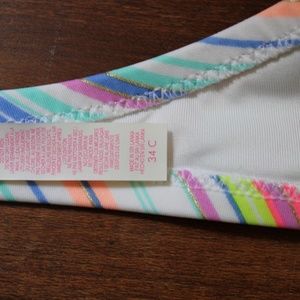 A super cute bikini top that is simple and colorful- size 34 c and comes with the straps. This bikini top will pair perfectly with a colorful, neon bottom.