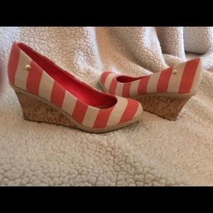 Cute red and tan striped wedges! Super comfortable and great for occasions! Brand new and in great condition. True to size!