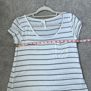 Chic and casual, this striped white and black top is perfect for everyday wear. Enjoy the comfort/soft (modal) and style it brings to your wardrobe. Comes from a smoke/pet free home.