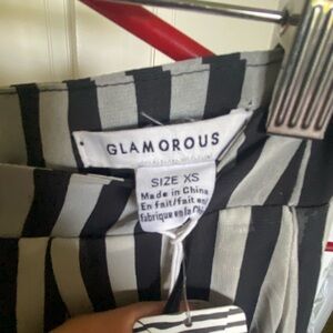 Stylish black and white striped wide-leg pants. Perfect for a chic look.