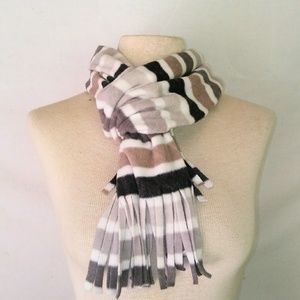 Super Soft Fleece Scarf with Hues of Brown Taupe Black & White Stripes.
