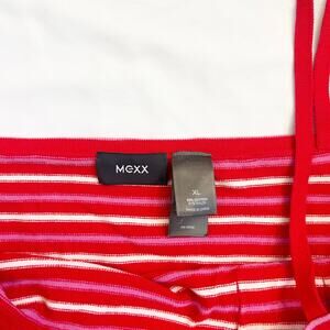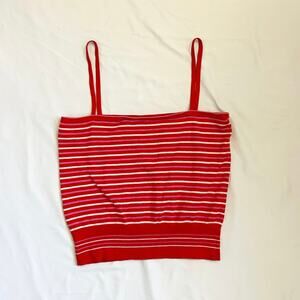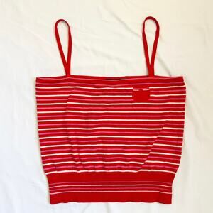 Red, white and pink 2000s striped cami tank top with a square neckline, rib trim at hem and mini micro pocket at bust.