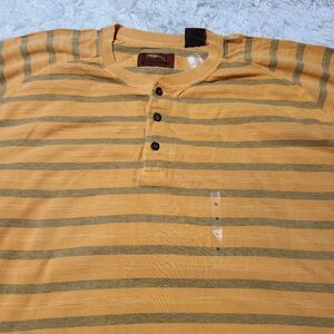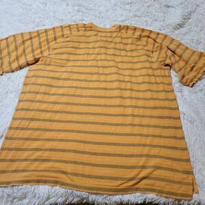 Elevate your casual wardrobe with this stylish striped tee. Featuring a vibrant yellow and gray design, this short sleeve shirt is perfect for any occasion.