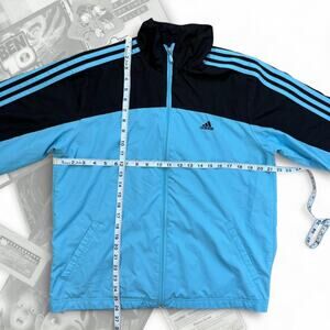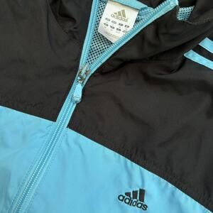 Y2K Black / Light Blue Adidas Striped Zip Up Track jacket / Windbreaker