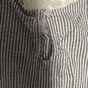 Neutral vertical stripes with beads around the hem