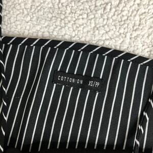 Striped black white chiffon lined square neck flowy tank top blouse XS