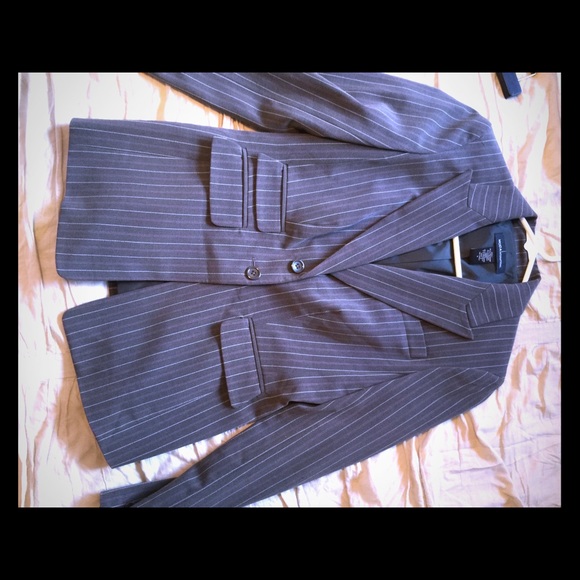 Gray with pink and white pinstripes. Blazer with 2 buttons in the front. Super cute! Never worn. From Victoria's Secret. Size 4