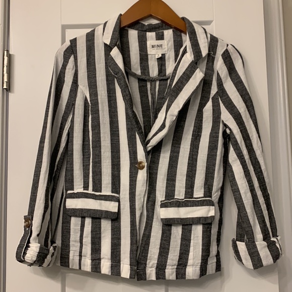 Gray and white striped blazer. Never worn. Rolled sleeves. 100% cotton.