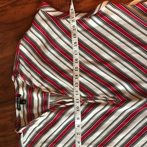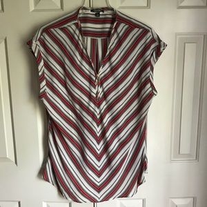 This sassy sleeveless blouse has a zip front and flows nicely on.