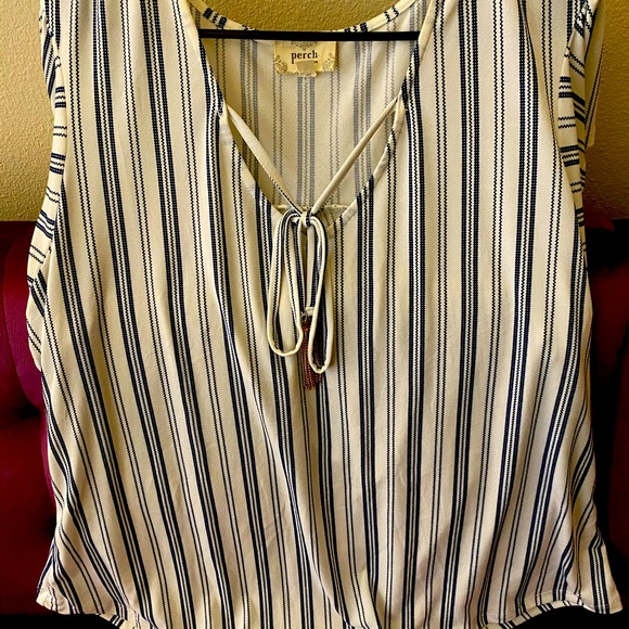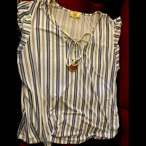 Blue Striped Blouse, Gold accent attached, Perch, 2X