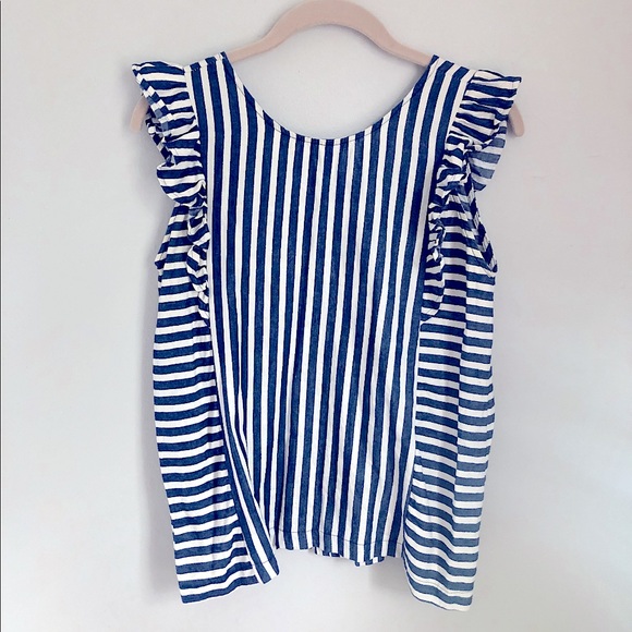 Super cute blouse from a chicago boutique. denim blue color and white stripes with cute zipper closure in back