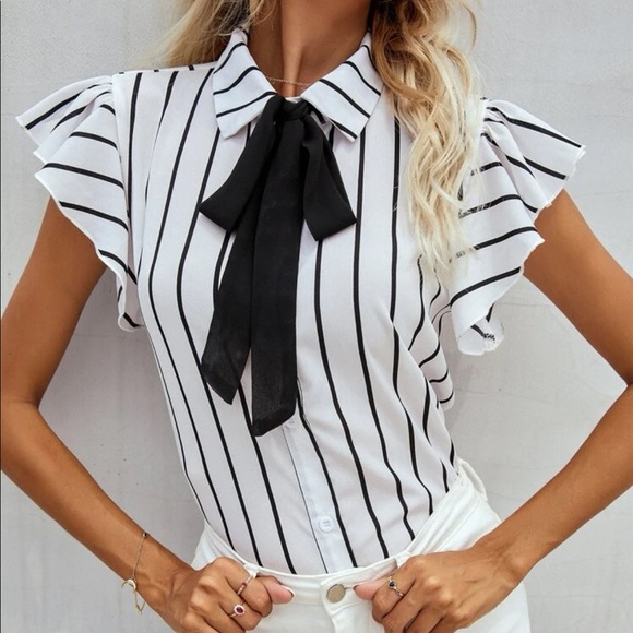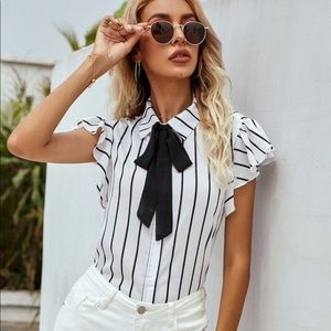 Striped black & white blouse with cap sleeves. Never worn. NWOT.