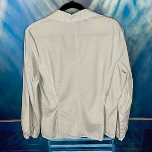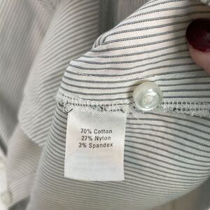 See photos for details Striped blouse Stretch Excellent condition Non smoking home Length 27” Sleeve 24” Armpit to armpit is 22”